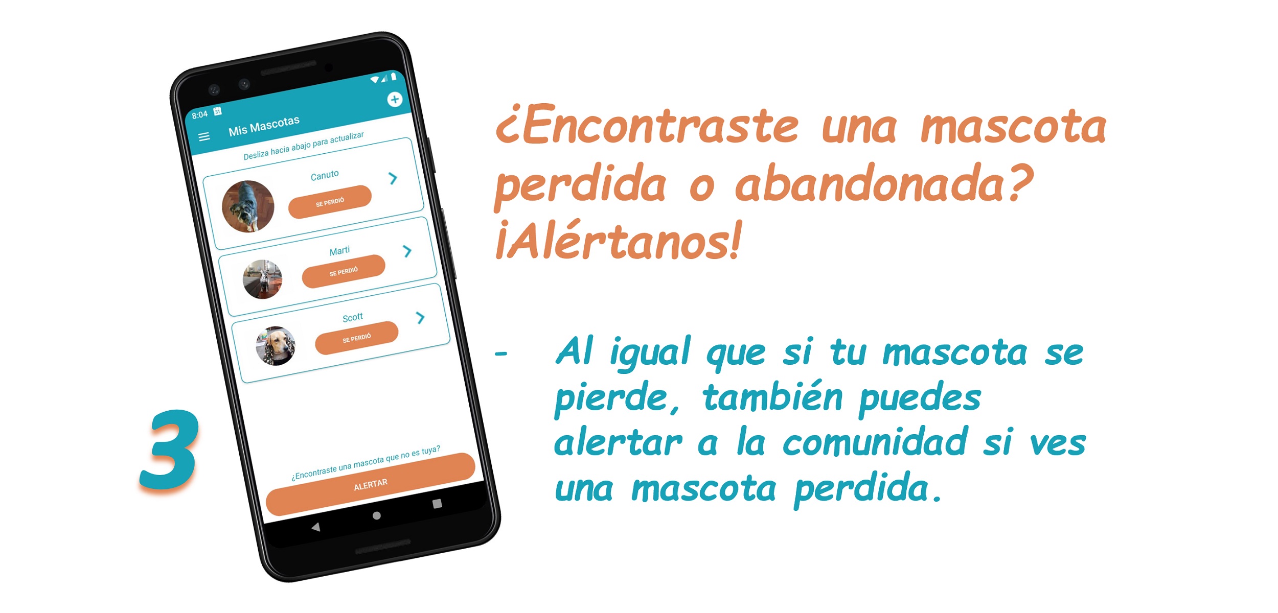 Con Pata Alerta puedes alertar a toda nuestra comunidad si tu mascota se perdió o incluso si encuentras una mascota perdida o abandonada.