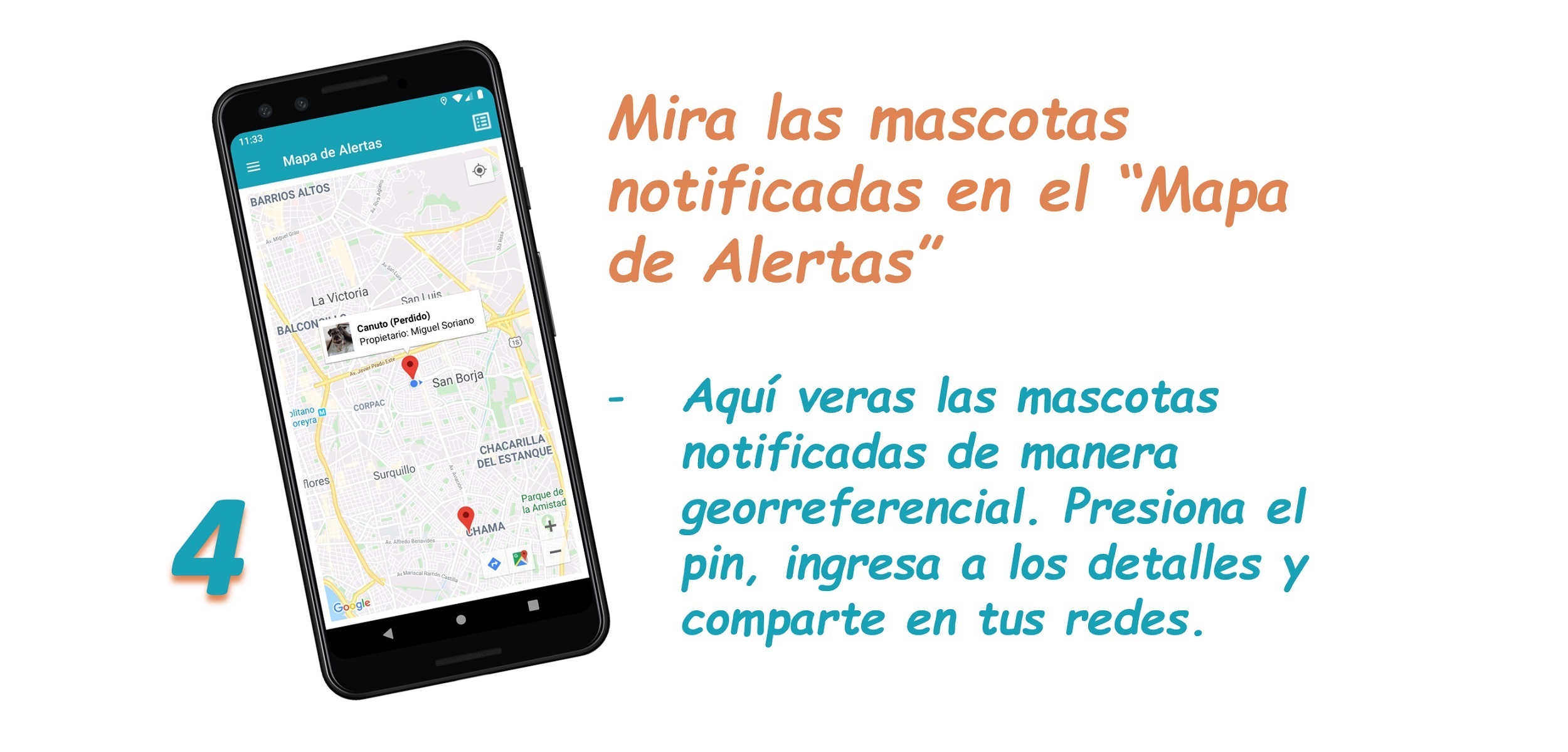 Revisa en nuestro Mapa de Alertas los casos de mascotas, notifica a nuestra comunidad en tiempo real y aumenta las probabilidades de encontrar a tu mejor amigo de 4 patas.